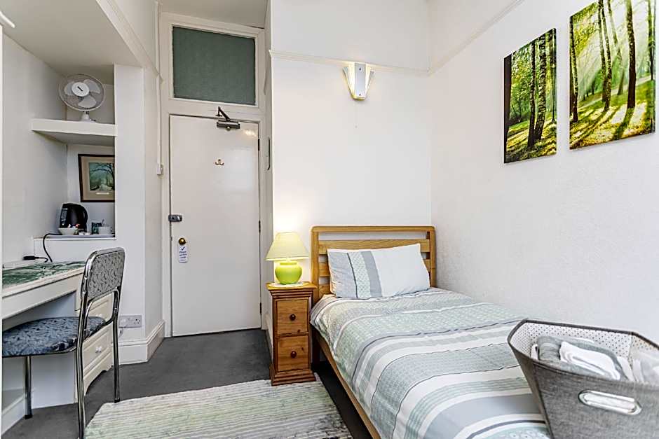 This single room has a Freeview flat-screen TV, tea/coffee making facilities, sink with mirror, towels, and complimentary soap and shower gel. The room has shared toilet and shower room facilities.