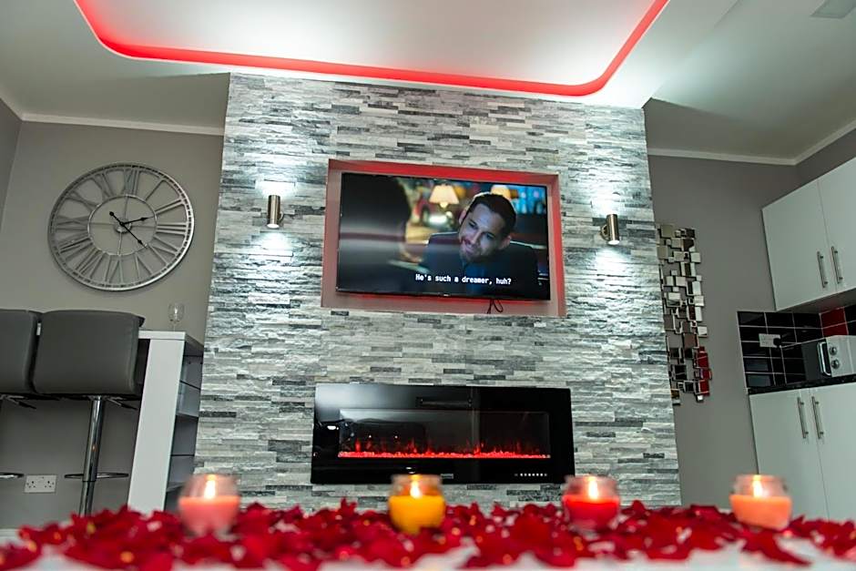 We had a very nice stay here at Aphrodite suites in the Love Nest apartment for our anniversary. The ambient lighting is great, smart TV's in each room, and a nice jet bath in the bathroom. We met the host at the door and he handed over our keys, where we then paid our security deposit. The apartment is close to some corner shops and takeaways, which is handy to get some dinner and a few other bits if needed. Great facilities included with a mini fridge, kitchenware, a toaster, microwave, etc. The TV in the living room is already logged into accounts with Netflix, Amazon Prime, and more. Bathroom is very nice and warm as well, with towels, bathrobes, slippers and bathroom amenities for you to use. It also has underfloor heating. Jet bath is very relaxing. We parked in their sister apartments car park rather than on the street, which is about 2 streets away or a 3 minute walk. When we checked out, we just dropped the keys in the box provided and got a text from the host asking us if our stay was good. I also got an email saying my security deposit had been refunded and will take 2-3 days to process. The host also answered all our questions without issue via text. Overall, it was a very nice stay and I would come back to visit again. For the price, you get a very luxurious experience and its worth the money. There are other places to stay at similar price points or more and in my opinion, they don't come close to this.