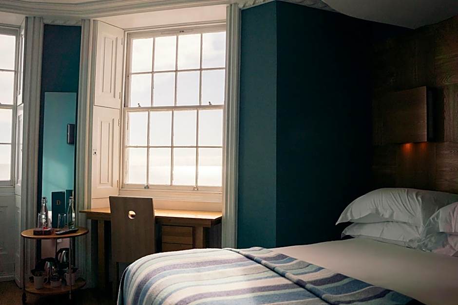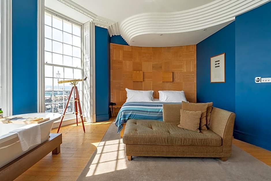 Our Marvelous Room/King Room with sea view. All have triple aspect bay windows with stunning views of the sea and free-standing baths and large wet rooms. These rooms are located on the 1st, 2nd and 3rd Floors with the window sizes decreasing the higher the floor as per a Georgian townhouse.