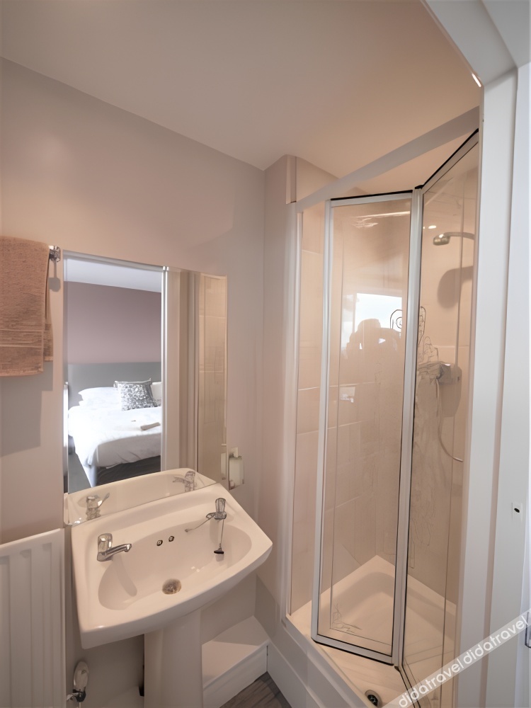 The welcome at the reception was really friendly and told us everything we needed to know. We found free car parking easily in front of the Inn. The room was spacious and was decorated very nicely with practical items like lots of tables, a bedside lamp, separate areas of lighting. The sofa bed was actually super comfortable. I liked the magnifying mirror in the bathroom. There were plenty of towels and hanging space for clothes. I loved that there were teas and coffees in the room, and lots of mugs and drinking glasses. The staff were really responsive to asking for more milk. They were also so flexible with food, and the portions served in the restaurant section of the pub are very generous in size, as are the drinks! The sea view was lovely in the day, and I loved the effective blackout blind in the velux window.
