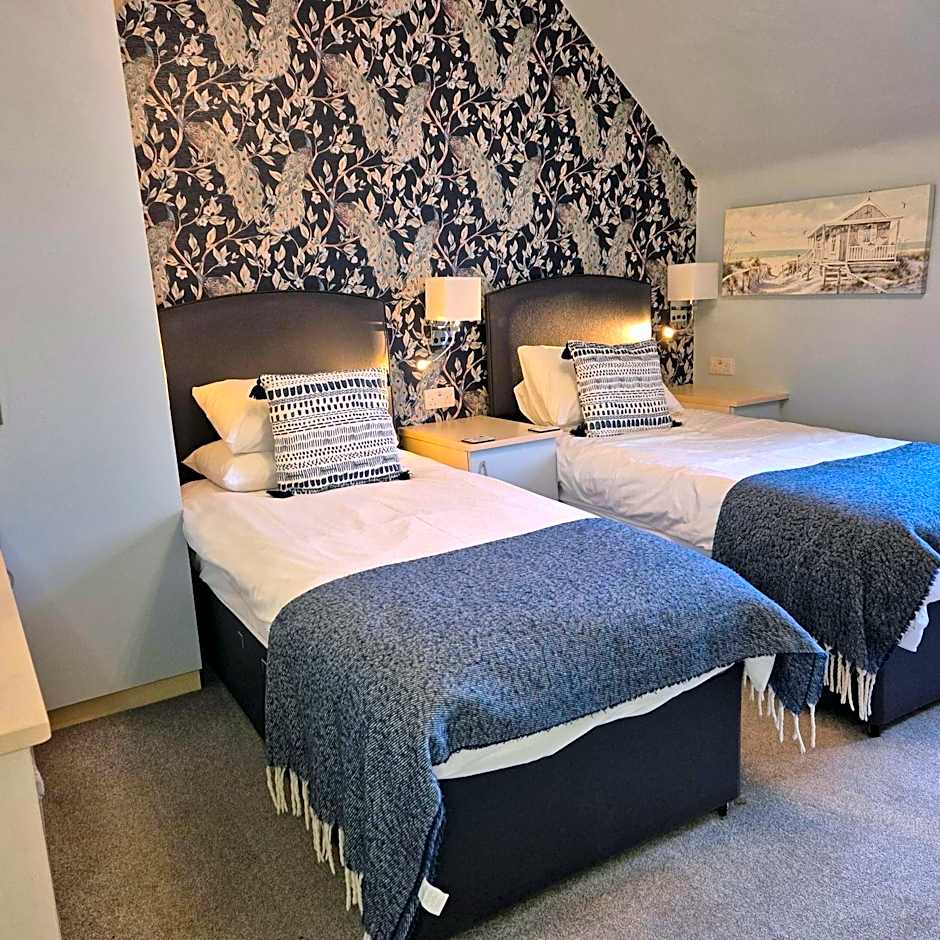 Kintrae B&B offers a variety of rooms including Double Rooms with En-Suite Showers for single occupancy, Standard Double Rooms, Triple Rooms with Private Bathrooms, and Standard Twin Rooms. Smoking is not allowed in any of the rooms. Bed options range from Double beds to Twin beds, and room sizes vary between 140 sqft to 205 sqft to accommodate 2 to 3 adults.