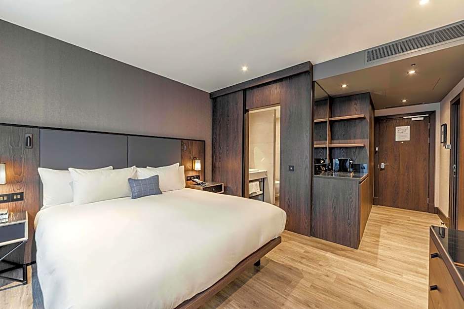 The Attenborough Apartment Suite is 398 square feet and includes a king-size bed 150-183 width plus living room, hairdryer, tea and coffee making facilities , safe, and bathrobes.