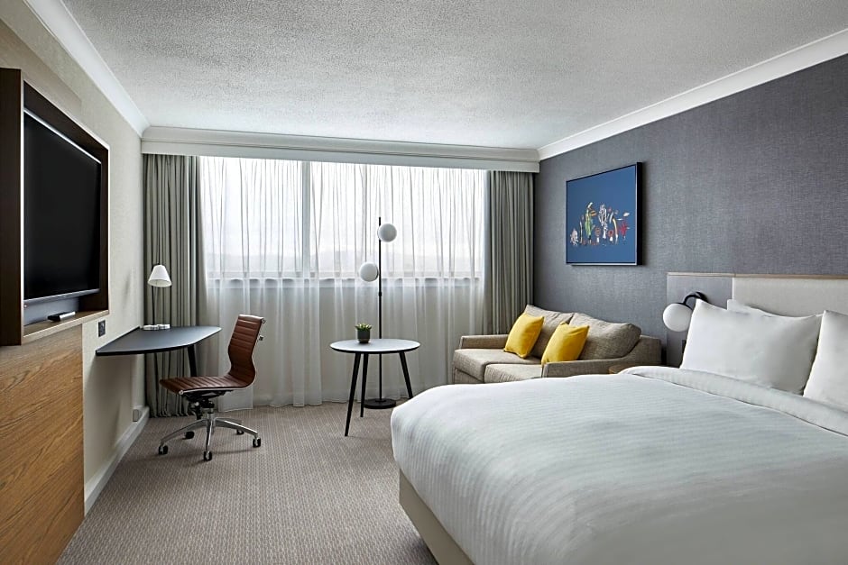 Ideal for guests wanting a little more space, our Executive King guest room is spacious and features a cozy sitting area as well as Executive Lounge access. - air-conditioned - flat-screen TV with streaming services, - a seating area - a wardrobe