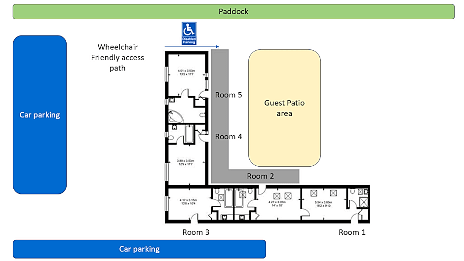 What a wonderful place, loved it’s all ground floor with car parked just outside of room, room was very fresh and clean, beds comfortable. Wonderful host , lovely extras in room, even tissues, dogs loved the paddock to run in. Breakfast was excellent, plenty of choice, perfectly cooked. Just beautiful all round small and peaceful. Definitely coming back!