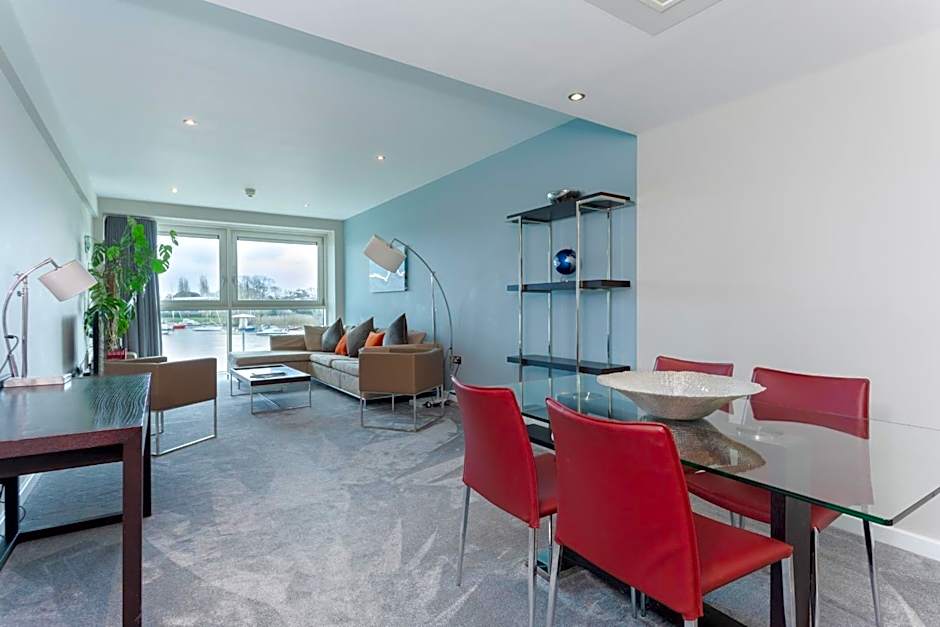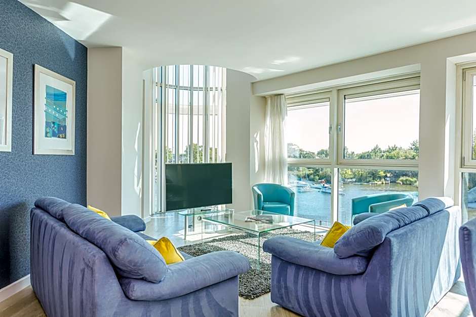 This spacious river-facing suite can sleep up to 3 guests. It features an open-plan kitchen and dining area, en suite shower room off the master double room, separate single bedroom and a luxury private bathroom. the lounge and Master bedroom has floor to ceiling windows with views out over the river.