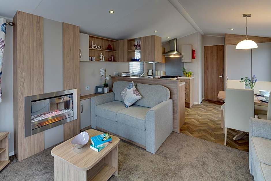 Luxury caravan for six people with hot tub, pet free. What can l say? If you want to live like home, it is OK because you have everything, a fridge freezer, a hob, 2 oven, sink, kitchenware, including groceries delivery. Also, there are possibilities to order food from the local restaurant or Deliveroo and Just Eat. All the areas are very clean, including the accommodation. Amazing hot tub, checked and treated every day. Located in the middle of the island it is about 20 minutes driving to any shore.