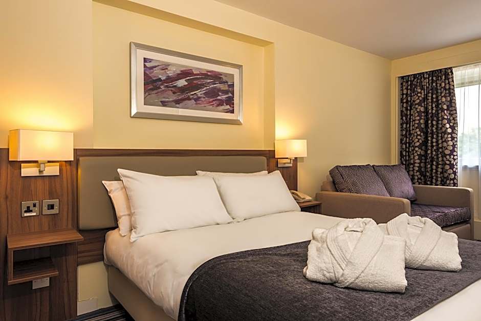 With a sofa bed, this contemporary executive room has a mini-bar and complimentary mineral water and chocolates. The TV has on-demand films and satellite channels. The private bathroom has a power shower and bathrobes.