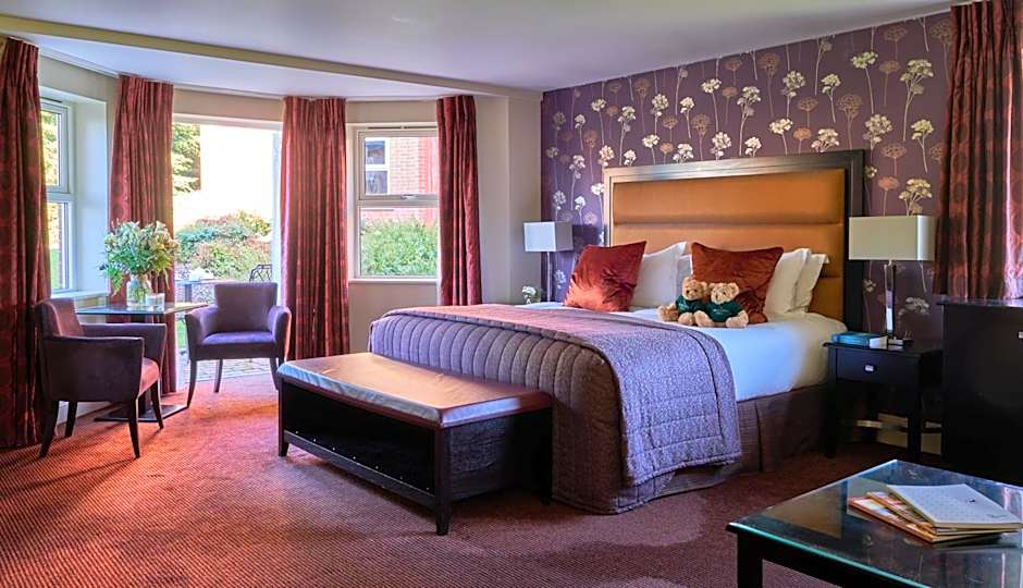 These modern bedrooms offer easy access to the award-winning spa and leisure facilities and The Old Hall, with a magnificent view over the gardens and the golf course. These extra spacious luxury en suites feature a king-size bed, mood lighting, air conditioning and extensive lounge seating. The beautiful marble clad bathroom has double sinks, a walk-in monsoon shower with separate bath and toilet.