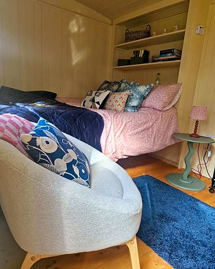 With a small seating area and views across the gardens, hills or woodland.