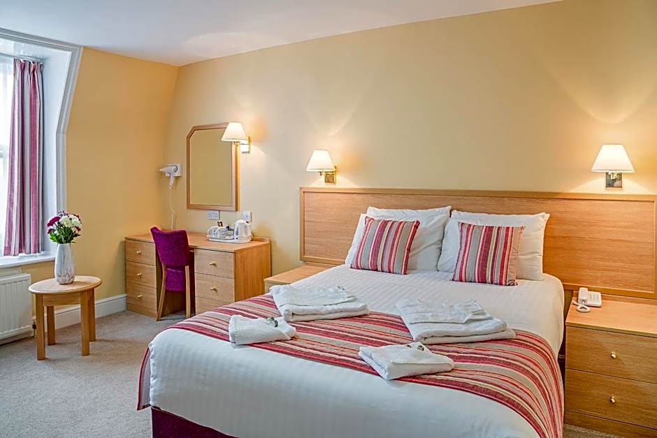 Loved the hotel! Room was a bit dated but clean and comfortable bed, had a bath that was good! Would have like a later breakfast Time only had one hour slot ,and was really busy but was served quickly and staff pleasant. The entertainment at night was for the older guests we are in our 50s but youngest there but to us it didn’t matter we also enjoyed the exercise going up and down the stairs to the 5th floor which we was on … all in all we enjoyed our stay in the queens hotel and would stay there again .