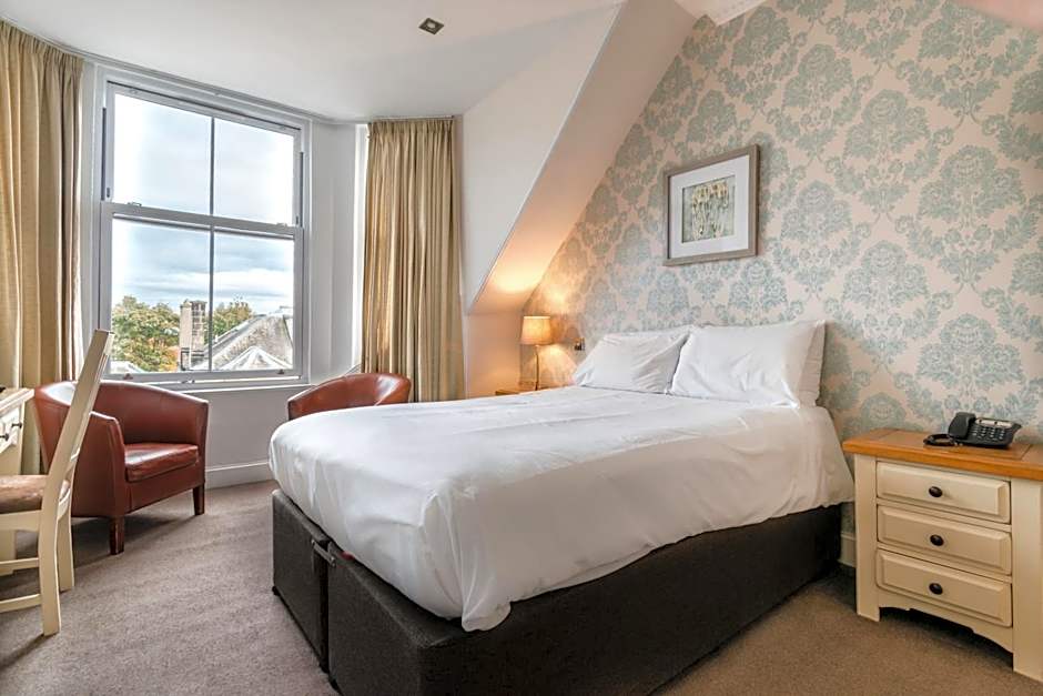 Our room was spacious and very comfortable. It was remarkable how quiet our room was and the 12 foot high ceilings added to the ambiance. The shower was quite excellent: full enclosure, choice of overhead rain shower or shower wand, both with normal to fabulous water pressure. The bed was king size and very comfortable, and the breakfasts were delicious. The hosts Susan and Kevin were delightful and the staff very helpful. We stayed multiple nights and the hosts graciously stored extra baggage for us while we traveled. Additionally, the staff assisted us in utilizing the local bus service, as well as, provide taxi service for us. Finally, the small pub was perfect for a good pint and/or Scottish whiskey.