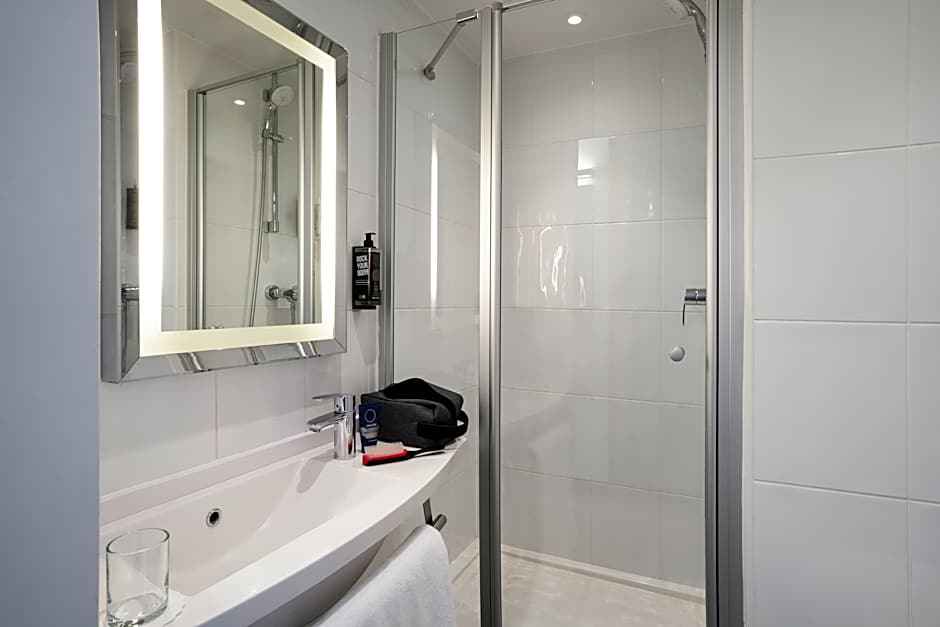 This room features a double SweetBed with an private bathroom and desk. Amenities include free high-speed WiFi, a 43-inch flat-screen TV, and USB charging hub.