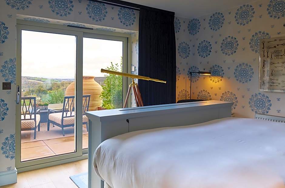 The vast bathroom has a free-standing bath and shower and is well stocked with 100 Acres Apothecary bath and body products. The room also includes a flat screen TV, high speed WiFi, homemade biscuits, Smeg coffee machine and kettle, Dyson hairdryer and super soft bathrobes.