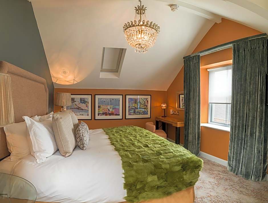 Statement art and lighting as well as a king size Hypnos Lansdowne Cashmere or Simmons bed are featured. The room also includes a flat screen TV, high speed WiFi, homemade biscuits, Smeg coffee machine and kettle, Dyson hairdryer and super soft bathrobes.