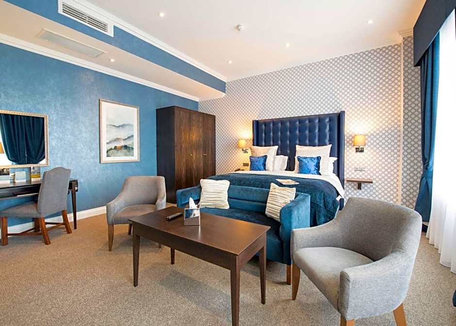 The Hythe Imperial Hotel, Spa & Golf offers a variety of room options. There are Deluxe Double Rooms and Classic Double Rooms, both with and without sea views. There are also Executive Double Rooms and Junior Suites. All rooms are non-smoking and accommodate 2 adults. The bed sizes range from double beds to king size beds.