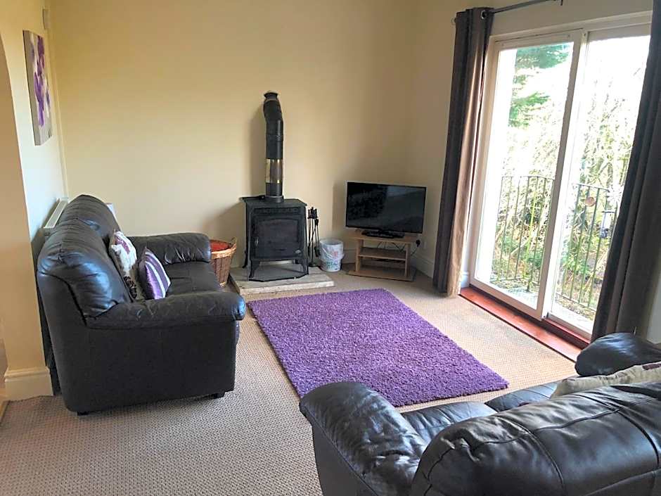 Ground floor: Living room, dining room/kitchen, with a wood burner in the living room.