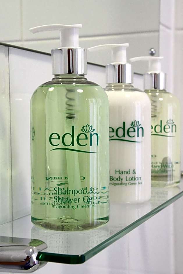 This room with attached bathroom has a flat-screen TV and Out of Eden toiletries.