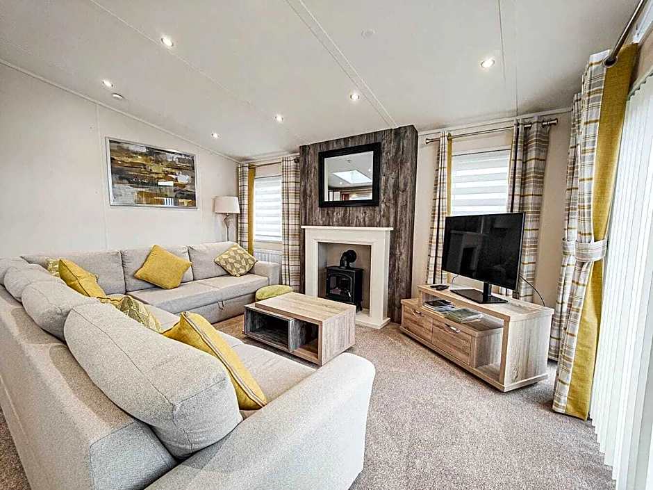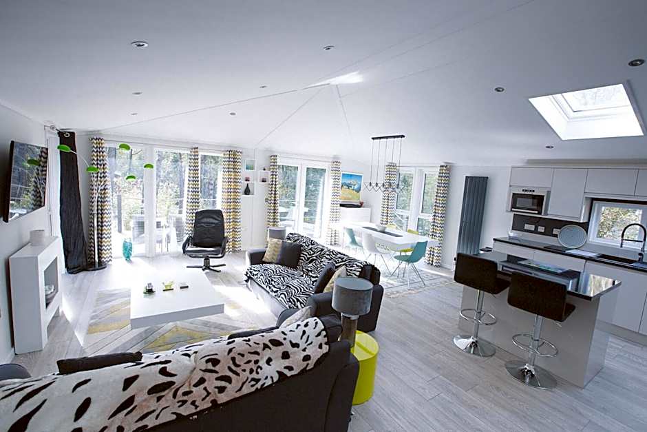 This lodge sits alongside the stream running through Chycara. There is 1 double bedroom with en-suite, and a further single bedroom. The family bathroom has a freestanding bathtub and waterproof TV. There is an open plan dining area with fully equipped kitchen and an electric fireplace.