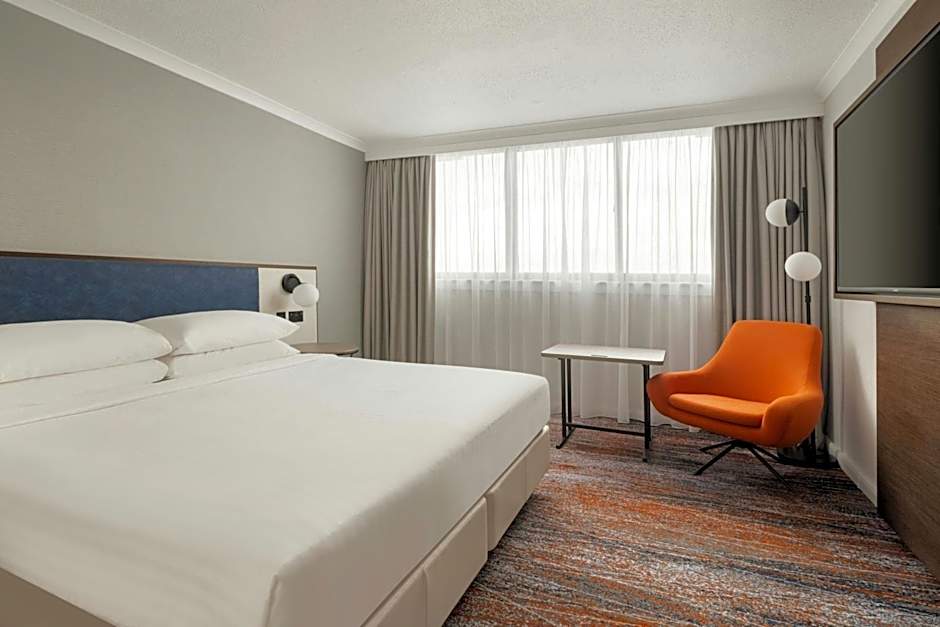 The spacious Executive king bedded room offers complimentary tea/coffee making facilities, Internet for a fee, work desk and hairdryer. The private bathroom includes a shower/bath combination and complimentary toiletries. The room also offers access to the Executive Lounge where you can enjoy complimentary beverages and canapés. Please note on Friday and Saturday, there are no canapés or alcoholic beverages available.