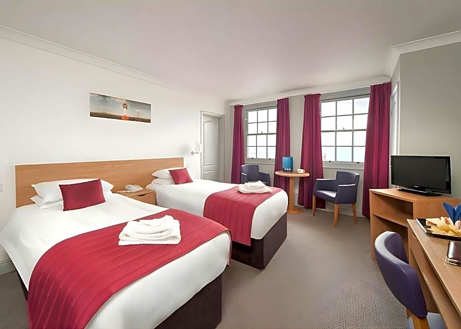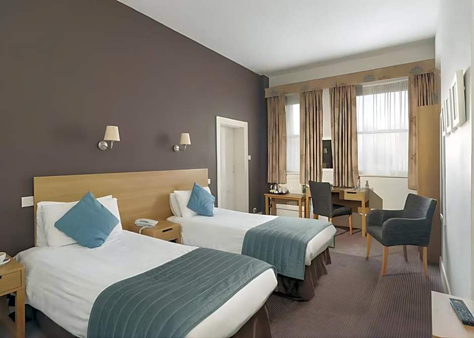 This twin room includes a seating area, TV and an electric kettle. The private bathroom comes with a bath or shower and hairdryer.