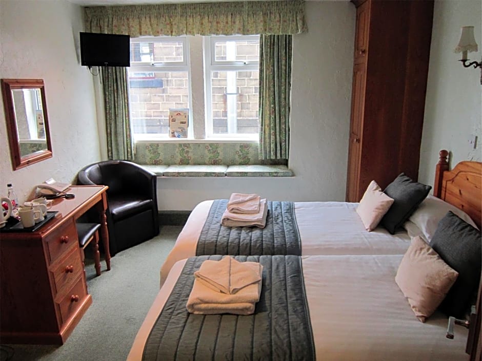 Restaurant in hotel very nice. Breakfast - continental - eggs made to order. Staff lovely and very helpful carrying luggage upstairs as there is no lift. Staff member "Finlay" extremely helpful and friendly. Shower hot and good pressure. Nice position at top of the main street hill ( which is quite steep) easy walk to the Parsonage and museum. Quaint shops in the main street not too far from the Keighley Vintage railway which is worth a visit.