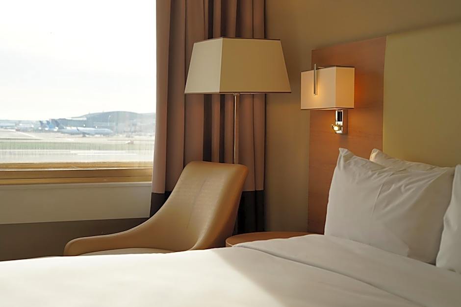 This room has access to the Club Lounge which is open 24 hours a day, and has canapés served in the evening along with free alcoholic and soft drinks. Hot breakfast between 06:00 and 10:00 is also served in the Club Lounge. The lounge has stunning views of Heathrow Airport, free newspapers, and the service of a Club Lounge Attendant. It also includes satellite TV, tea, coffee and soft drinks.