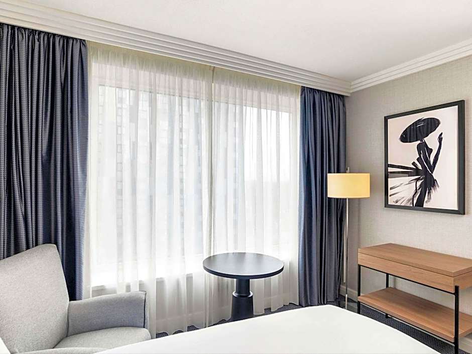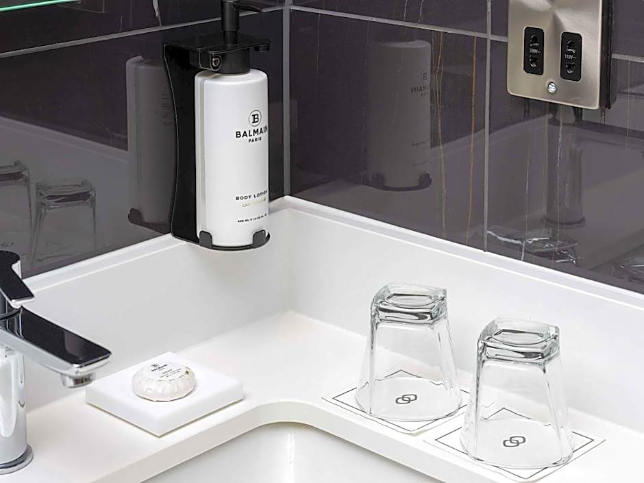 Modern and airy bedroom with a touch of sophistication. Air Conditioned Room on the Higher Floors, Walk-in shower, Sustainable Luxury bathroom amenities, Nespresso machine and Mini-bar. Access to the 8th Floor Club Millesime Lounge offering drinks and canapes in the evenings and Continental Breakfast in the mornings.