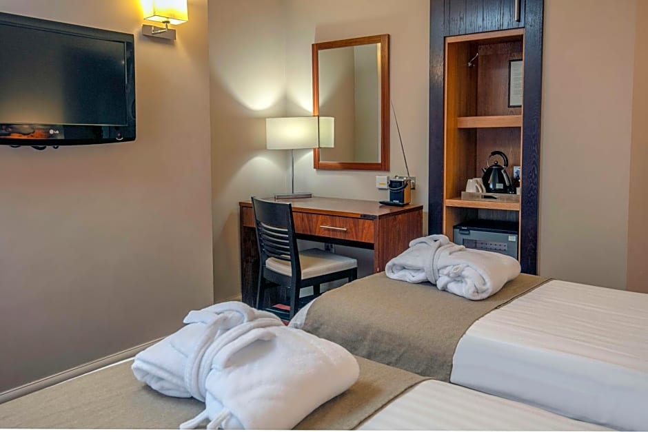 I asked if they had a little ice for the fridge, and they brought to our room a bucket of crushed ice, which lasted us 4 days. Nothing was too much trouble. Reception staff happily booked our taxis and kept us topped up with tea and sugar. We bought a pint of milk from the corner shop as we can't tolerate uht, but, otherwise, a perfect stay. Dressing gowns and slippers were provided, too, Thanks for everything you did for us. Highly recommend 👌