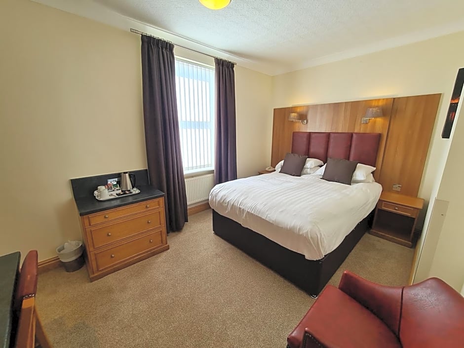 This room has an private bathroom with free toiletries. Other amenities include tea/coffee making facilities and a flat-screen TV. All of our en suite double bedrooms offer a king size bed with memory foam mattress, tea and coffee making facilities, hairdryer, iron and ironing board, television, telephone and complimentary wifi. All double rooms have baths with showers. Our standard double rooms are either rear or side facing