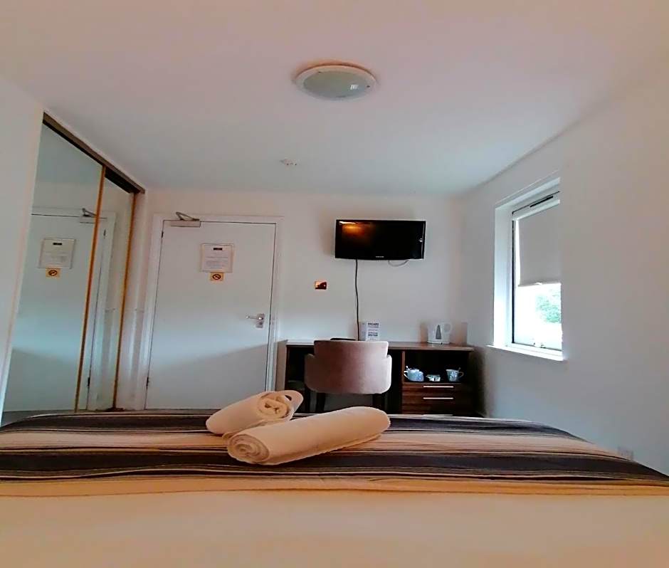 The clean room and ensuite, it really was spotless and fresh and more modern than expected. Nice little touches. Mint on the pillow and nicely displayed brew tray. Good sized telly and lovely sized ensuite with a walk-in shower. the beds were a good size, fit for purpose, and we had a great night sleep, again very clean. Huge wardrobe door mirrors, plenty of storage. Great value for money. I wasn't expecting much facilities wise, but the bar looked welcoming, and the restaurant/ takeaway next door, Oscars was a comfort food delight.
