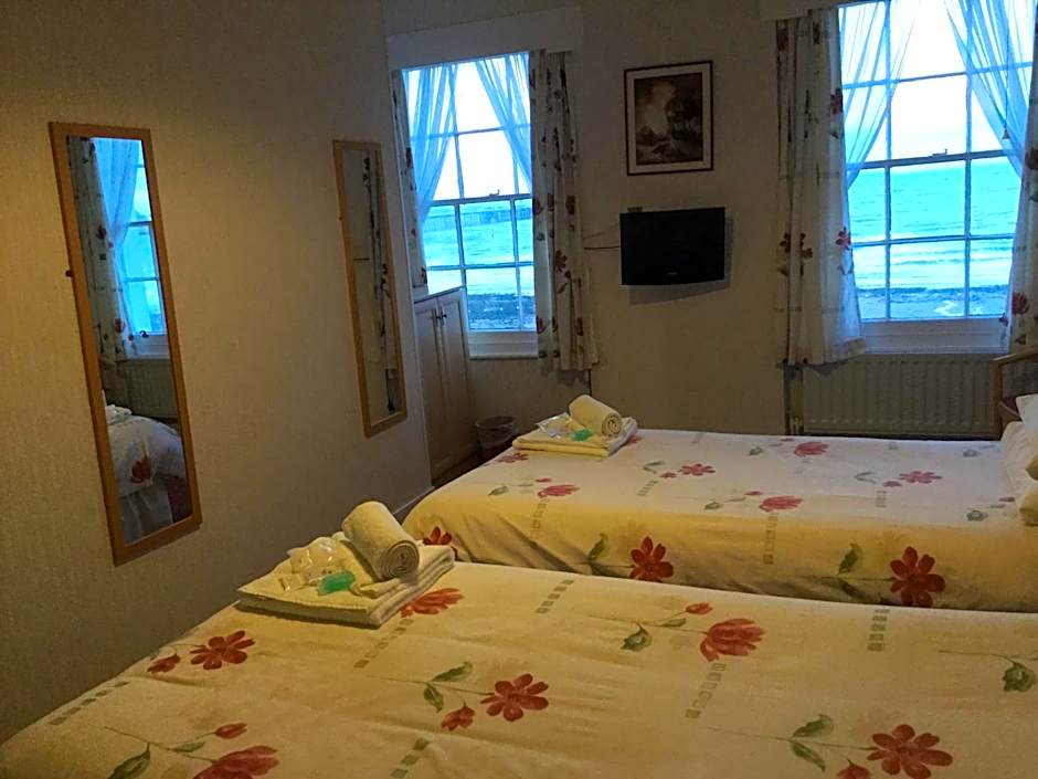 Lovely sea view. Room was ideal for 3/4 people double bed 2 singles bathroom a bit small but for one or two nights ok friendly staff did not have breakfast as we had to leave early to get back home.
