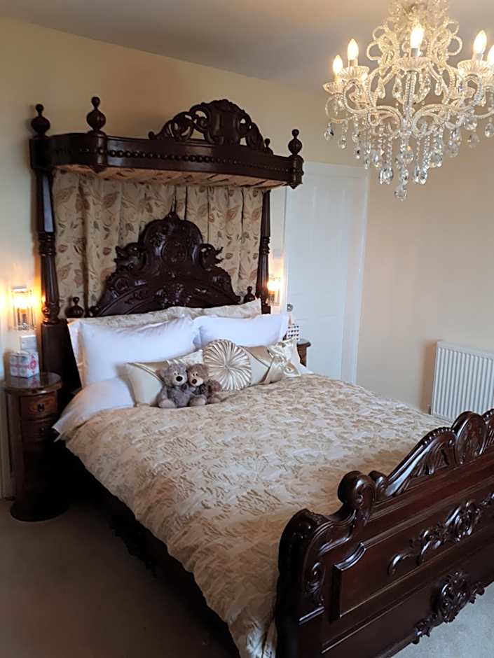 This room features a mahogany half tester canopy bed and an en suite shower room.