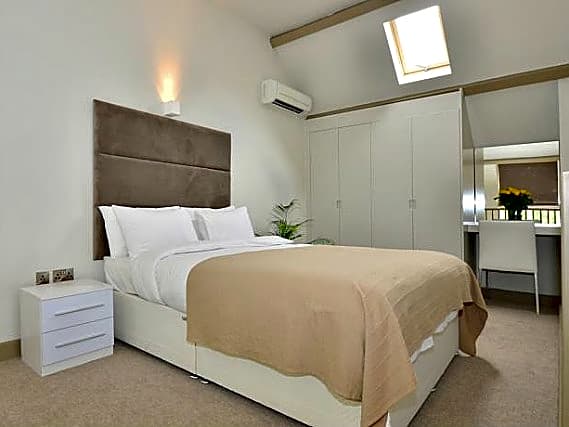 Extremely spacious accommodations bathed with natural light through the dual aspect feature church-style windows. Luxury Studios have extremely high ceilings and resemble the loft concept. Each studio has a sofa bed, a flat-screen TV, kitchen area, and work area. Free Wi-Fi is available throughout. The bespoke shower room has an over sized shower, wash hand basin with back lit vanity mirror, toilet, complimentary toiletries and is fully tiled throughout. Some of the Luxury Studios have a bath with integral shower.