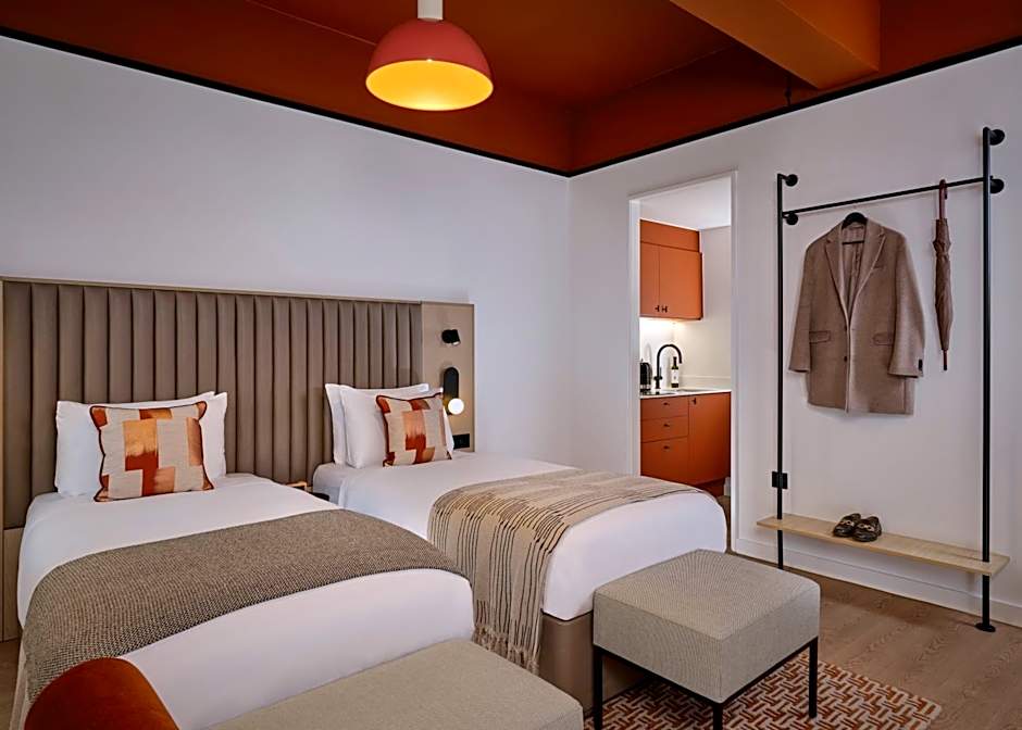 We stayed in a newly renovated studio with twin beds. It was spacious enough for 2 - a great layout with a kitchen area and breakfast bar/stools, coffee making facilities too. Small sofa to sit on. Good wardrobes, storage, safe etc. Great shower room. Great location on Holborn, just a 2 minute stroll from the Holborn tube station. Now that the renovation appears complete, there is nothing not to like about the Citadines. It is modern, well designed and clean. Will definitely be returning and have already recommended to friends.