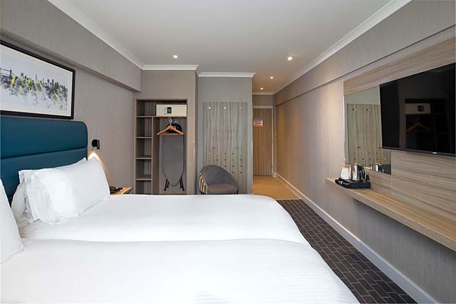 The twin room offers a wardrobe, a safe deposit box, an electric kettle, a carpeted floor and a flat-screen TV. The unit offers 2 beds.