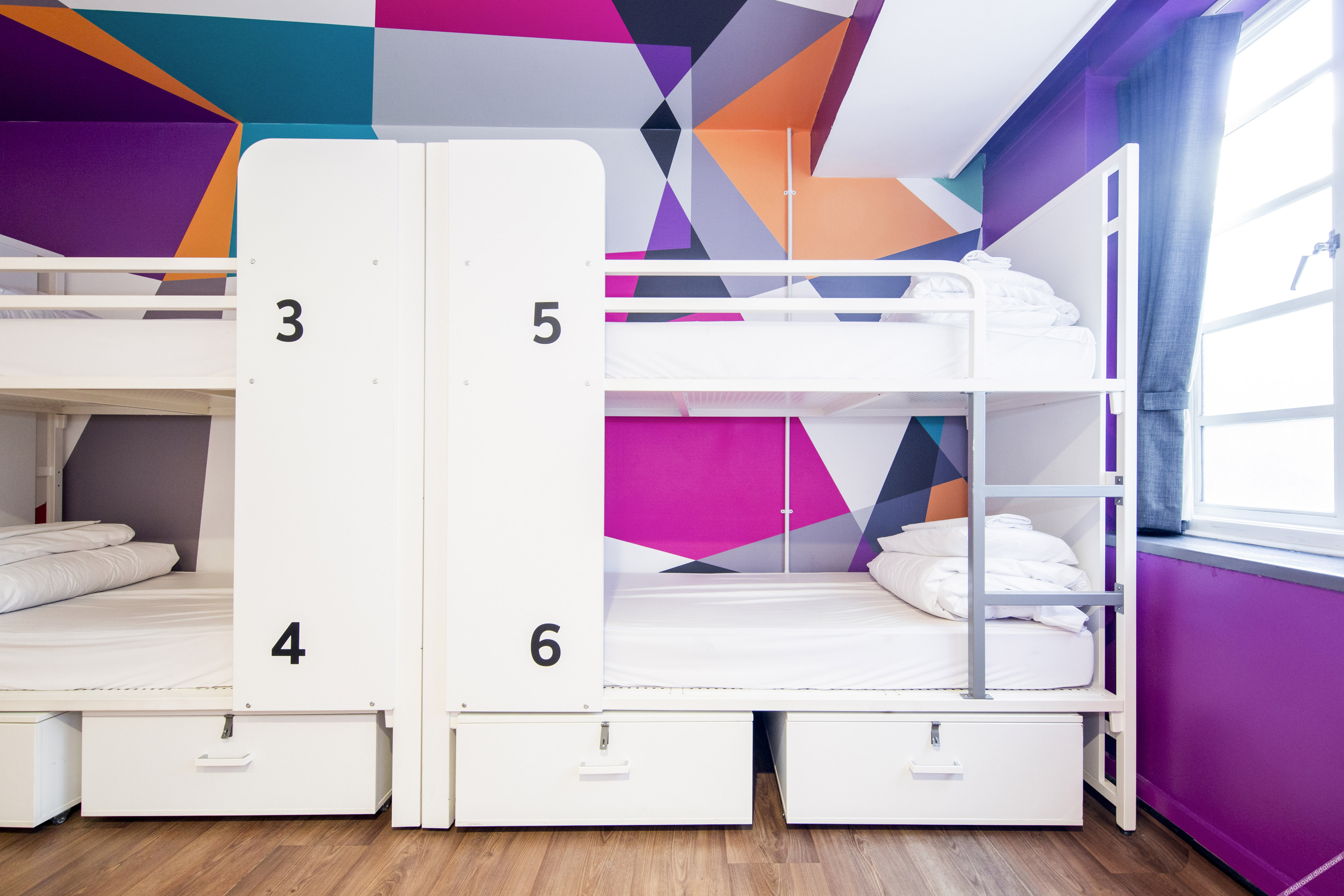 This room offers a bed in a shared dormitory. Guests have access to shared showers and toilets located nearby on every floor. These rooms have 6 beds. All bunks include a light feature, personal shelf, charging station with USB port, and under-bed lockers. Pillow, duvet and linen are supplied. Towels are available at reception for an additional fee.