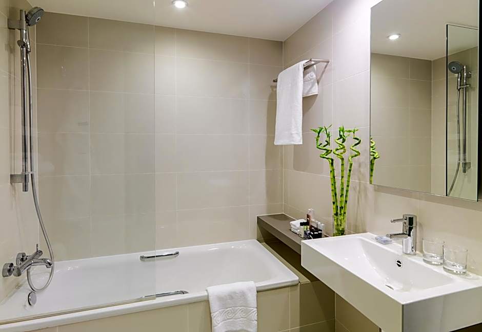 Excellent location and great amenities - in the heart of London. Wonderful sky bar with sweeping views of London, indoor / outdoor seating, and lovely garden. The food at the 8th floor outdoor restaurant was delicious, and service was excellent. We especially appreciated our waiter Olindo's excellent service. He was genuinely kind and attentive - which contributed to our dining at the outdoor restaurant several times during our visit. I would definitely stay here again. If you are looking for a central location, comfortable hotel, nice amenities, and excellent service, this is the place to be! I high recommend!