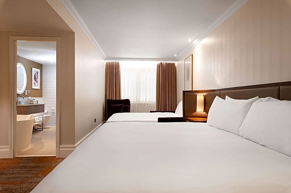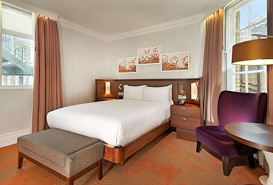 sleeps 2 adults, air conditioning, LED HDTV, mini-fridge Relax in this guest room featuring comfortable, modern decor with a classic twist. Perfect for a weekend away or a longer business stay, the room is equipped with all the amenities you would expect. Features include standard WiFi, individually controlled air conditioning and a sumptuous double Hilton Serenity bed. Keep drinks and snacks cool in the mini-fridge, get to work at the desk or relax with a selection of satellite channels, including BT Sport, on the 42-inch LED HDTV. The private bathroom offers a walk-in shower or combined bath and shower. If you have any specific preferences, please let us know at the time of booking (subject to availability). Sleeps 2 adults. Room size ranges from 10.1 sq. m. to 13.4 sq. m. (the average is 12.4 sq. m.).