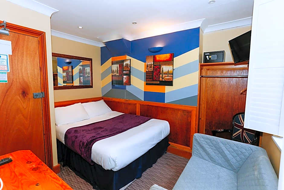 The hotel offers a Standard Double Room Ensuite with a double bed, a Superior Double Room Ensuite with a double bed, and a Small Double Room with a shared bathroom. These rooms do not allow smoking and accommodate up to 2 adults. The Family Room with Private Bathroom is larger, allowing up to 5 adults and featuring one twin bed and two double beds, without smoking allowed.