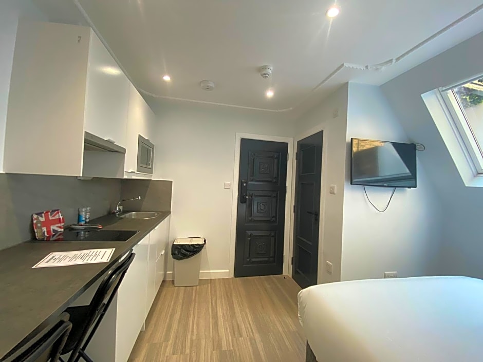 The studio offers a wardrobe, an electric kettle, as well as a private bathroom boasting a walk-in shower and a hairdryer. In the kitchenette, guests will find a stovetop, a refrigerator, kitchenware and a microwave. This studio provides heating and a flat-screen TV. The unit has 1 bed.