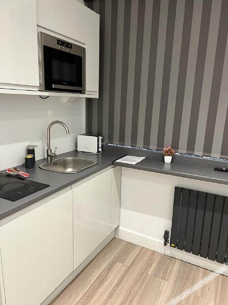 The location is perfect, close to Underground and Kensington Gardens, a stroll away from Science Museum and Natural History Museum. We had a room with a street view and it wasn't loud at night. Many convenience stores and takeaways nearby. The staff is remarkably helpful! The bed was comfortable and big enough for us. We were on the 3rd floor and had an elevator just outside our room. The room was on the small side, but had space for our clothes, a table and two chairs and the kitchen was well equipped for us (though it is funny how they give you two of everything -two forks, spoons, etc).