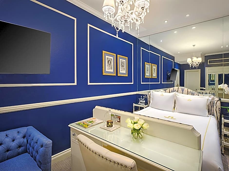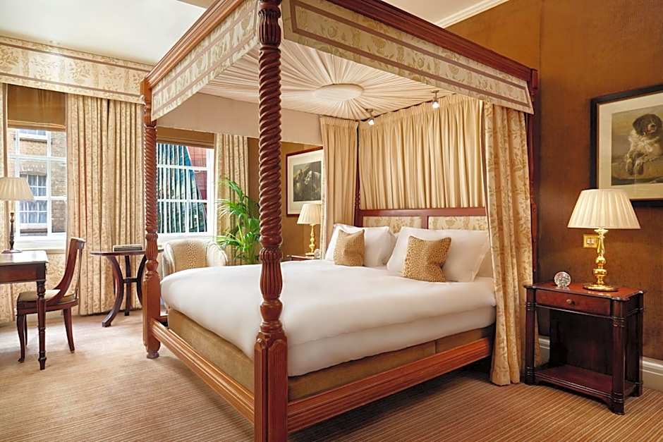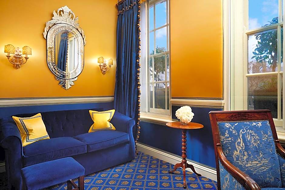This suite features a bedroom with a four-poster bed with an private bathroom. An interconnected lounge with views of the Royal Mews of Buckingham Palace is included. The living area features an optional pull-down bed and animal-print furnishings.