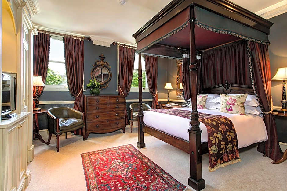 This deluxe double is uniquely furnished with antiques, ornate gilt mirrors and chandeliers. It features a stunning oak carved four-poster or a half-tester bed. All bathrooms have a combined bathtub with a shower and Penhaligon's toiletries. Special touches include frette linen dressing gowns, beautiful fabrics, pillows, ornate beds and towels.