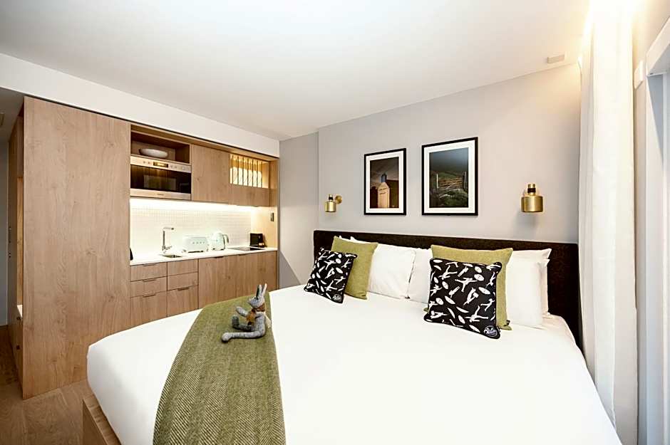 Söker du lite mer lyx? Wilde Superior Studio, med sin lockande king size-säng, erbjuder en ljuvlig tillflykt efter dina utforskningar i London. Njut av den livliga atmosfären precis utanför din dörr, och koppla sedan av i din stilfulla bostad medan du njuter av en stunds lugn. Reser du i större sällskap är Studio Apartment Executive perfekt för att bre ut sig under vistelsen — den rymmer många utan att kännas trång. Det handlar om att få ut det mesta av din semester, vare sig det är en mysig kväll hemma eller en fartfylld utflykt!