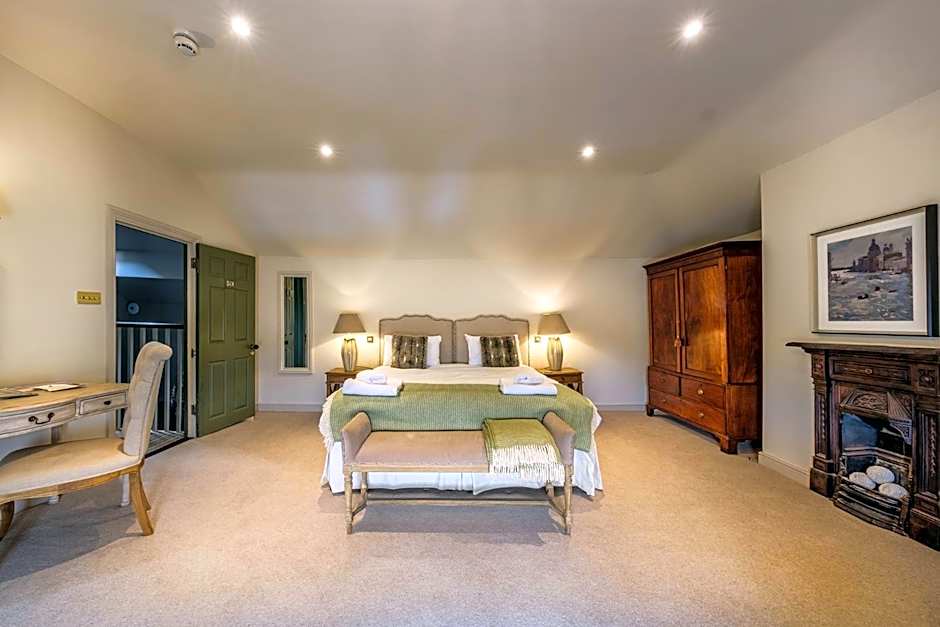 This suite has a separate lounge with a large sofa and an antique coffee table, perfect to wind back and relax during your stay. The light and airy bedroom has a beautiful view of the village green, a king sized bed and a spacious en-suite featuring an antique bath and overhead shower, washbasin and heated towel rail. The suite is equipped with a flat-screen TV, tea/coffee making facilities, high-speed Wi-Fi and Bramley bath and body products.