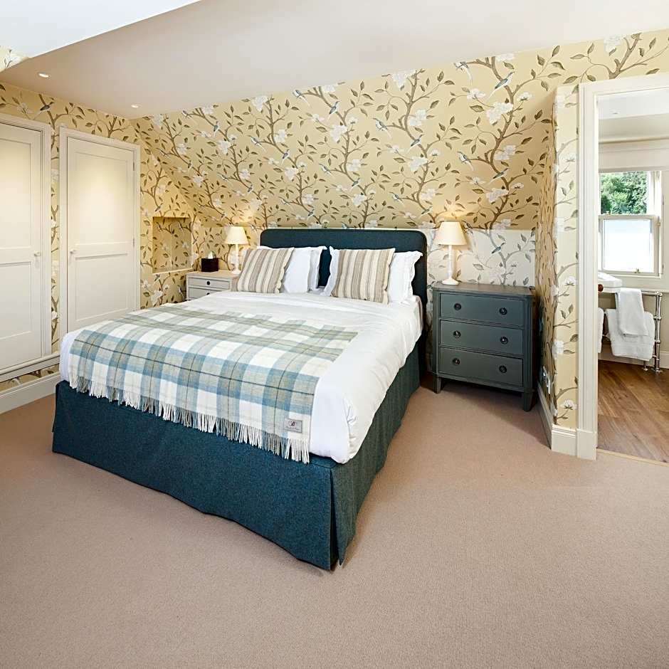This more spacious room with a super king-size four-poster bed is set in the main house and features a coal effect gas fire and walk-in wardrobe. The private bathroom has a double bath, separate shower and a double sink.