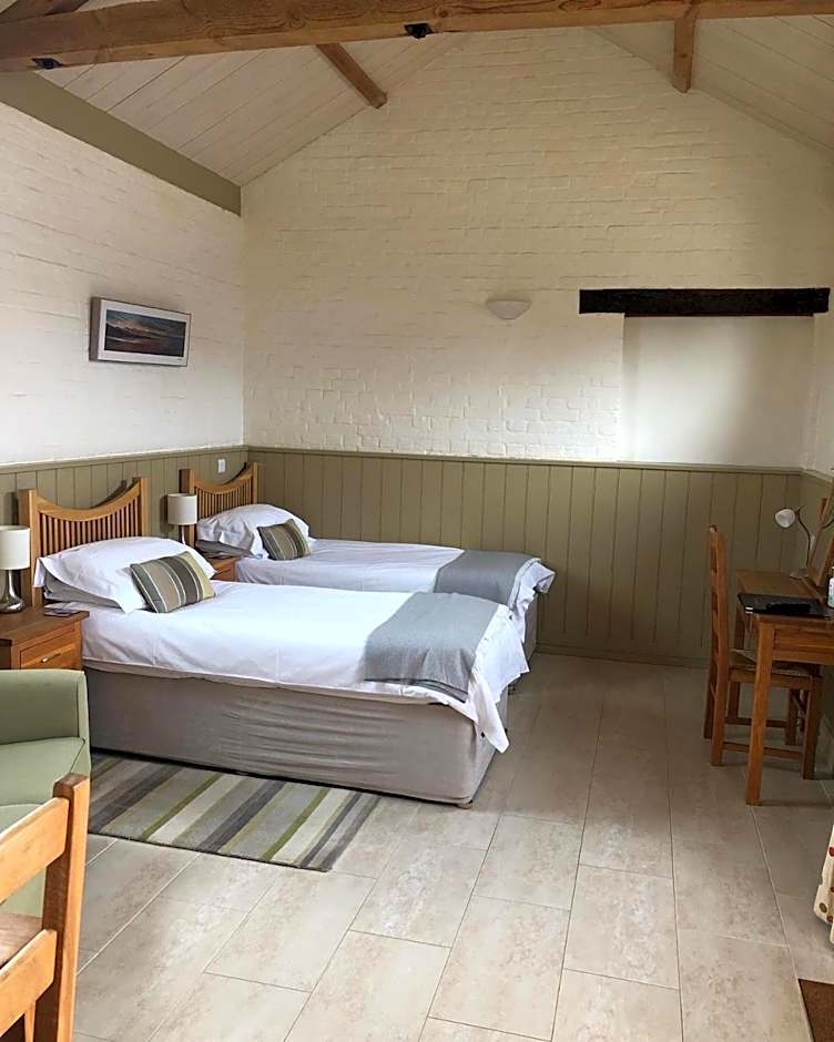 Friendly owner and lovely rooms with parking right outside. Selection of tea and coffee bags and biscuits on arrival. Underfloor heating and a heated towel rail (on timer) meant the room was cosy. Good wifi and a great breakfast, served in the main building across the courtyard. Umbrella provided in the room in case of rain.