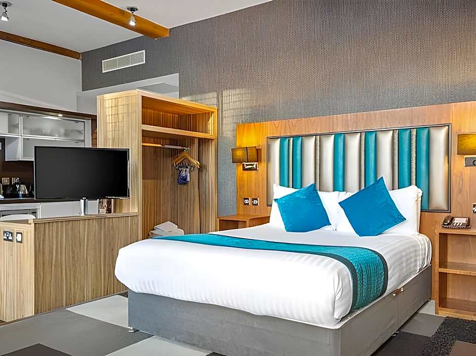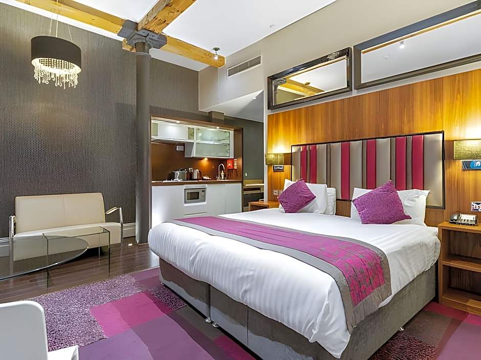 These Loft Suites offer split level open-plan living areas with comfortable seating and a coffee table. There is also a kitchen pod and a shower room. Some suites are available with baths and their own plasma TV. The Grab & Go breakfast is also included which consists of fresh fruit, freshly baked pastries, breakfast muffins, hot drinks and fruit juices.