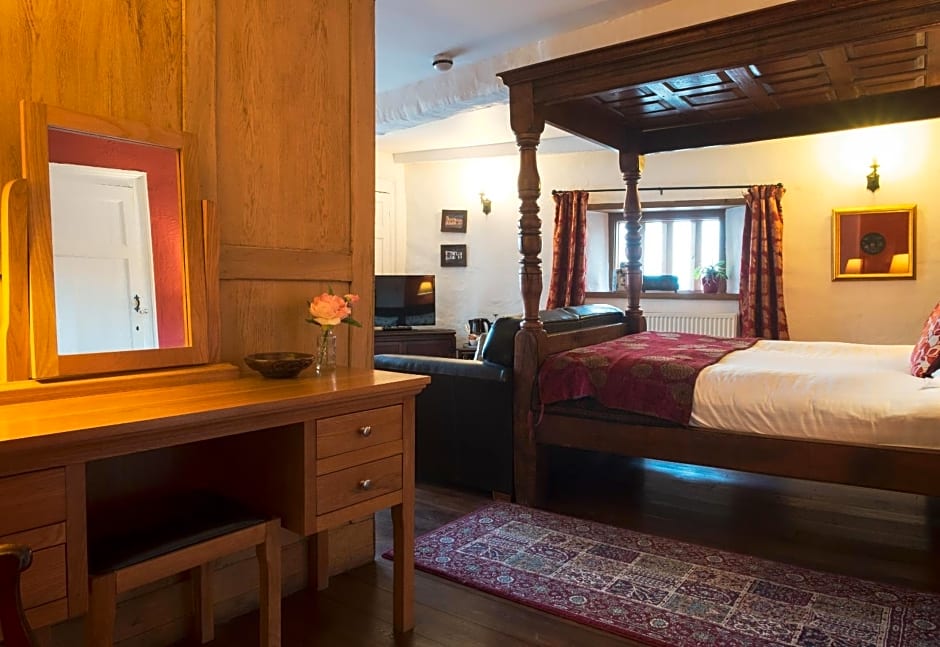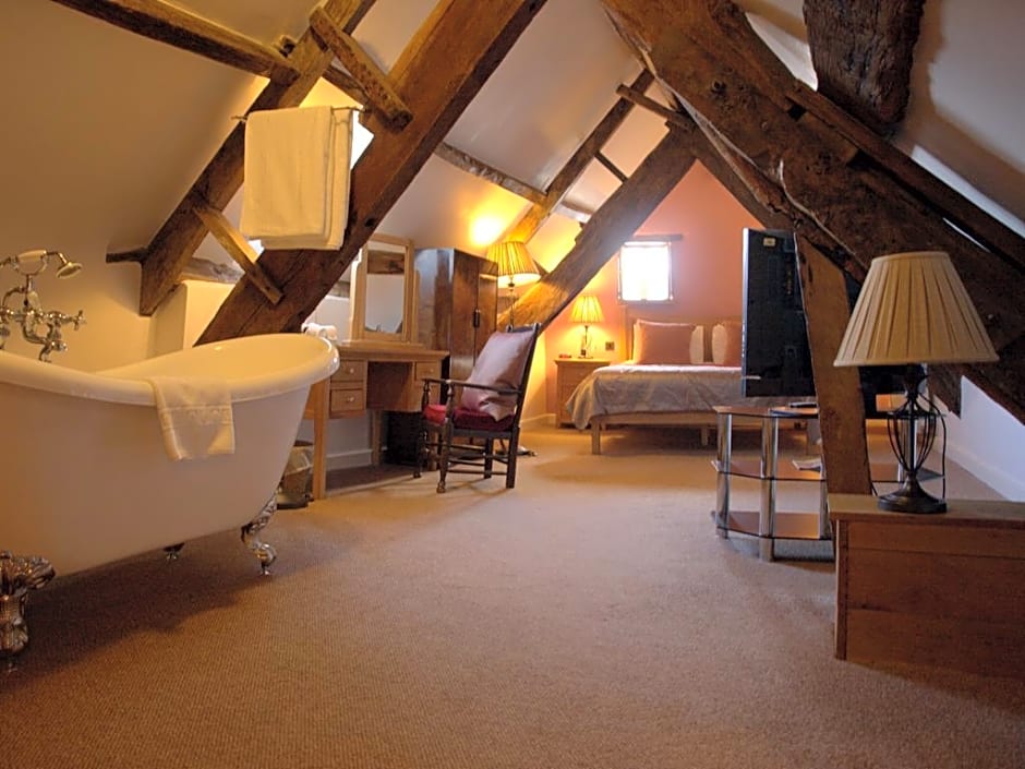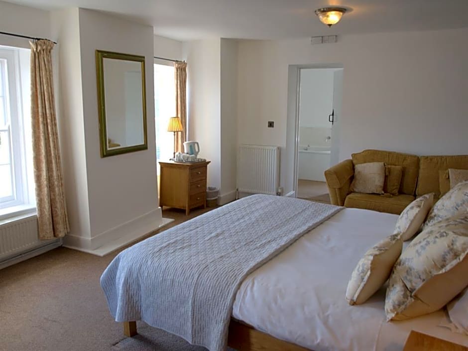 Lovely big bedroom with a large, comfortable bed, sofa and chairs. Spacious bathroom with twin basins, good shower and large jacuzzi bath. Quaint old coaching inn serving excellent breakfast and nicely presented meals. Great location with pleasant tree shaded area for drinks and eating. The staff were friendly and helpful throughout our stay.
