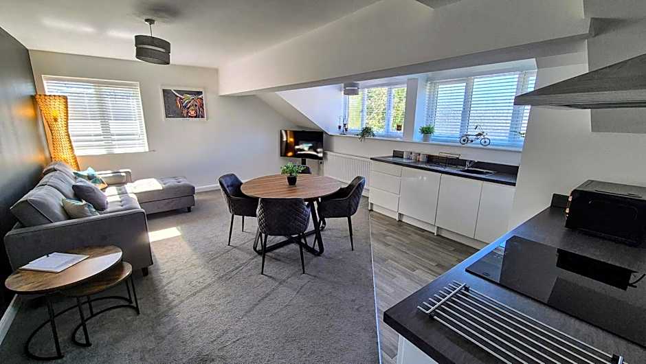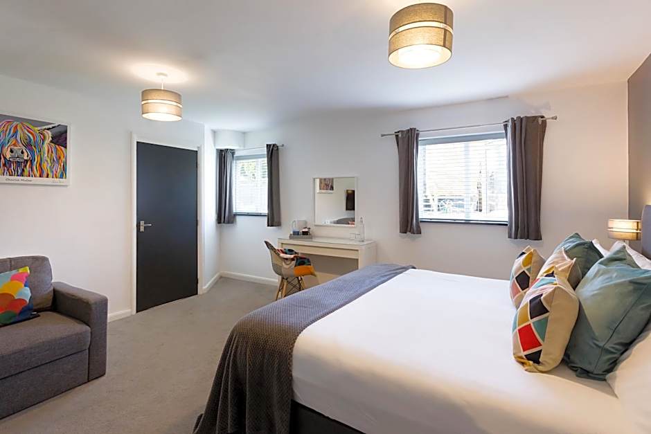Deluxe Apartment The Apartment has everything you need for a longer stay, including, cooker, oven, microwave, fridge, all kitchen pans, crockery, and utensils etc. Features include an open plan living room with kitchen and dining area and a double sofa bed. A large bedroom with super king bed (which can be configured as two singles) and a single bed, dressing table and wardrobe, and a family bathroom with shower.